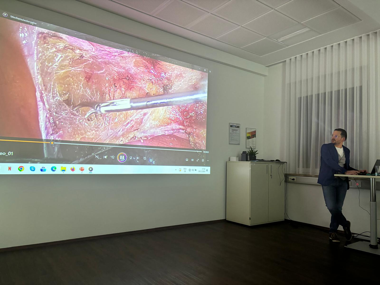 Im Rahmen der Fortbildung „Hernienchirurgie – Was gibt es Neues?“ versammelten sich interessierte Ärzt:innen, um aktuelle Informationen zu erhalten und in einen gemeinsamen Austausch zu treten. Ltd. OA Dr. Grün referierte über das Spektrum der Hernienchirurgie, unter Berücksichtigung neuer Leitlinien. Der Fokus lag auf den hausinternen Operationsverfahren und den Perspektiven zukünftiger Entwicklungen.