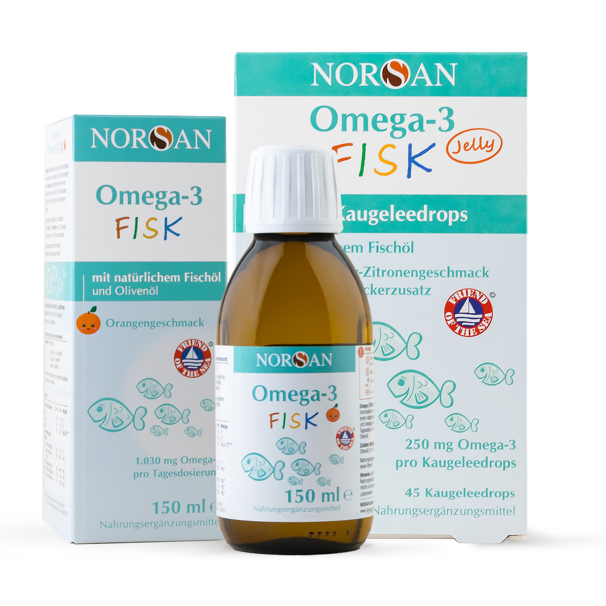 NORSAN Omega-3 FISK Jelly Fruchtig leckere Kaugeleedrops – besonders für Kinder, Teenager und Erwachsene geeignet. Mit natürlichem Fischöl aus Wildfang, reich an EPA und DHA. Das enthaltene Fischöl ist aus nachhaltigem Wildfang, schonend gereinigt von Schadstoffen und Schwermetallen und wird in Norwegen produziert. Das Besondere: Die Drops sind zum Kauen und speziell für die Bedürfnisse von Kindern entwickelt worden. Gerade Kindern fällt es schwer, mehrmals pro Woche oder gar täglich Fisch zu essen. Deswegen ist die Darreichungsform über leckere Kaugeleedrops eine super Alternative für Kinder. Die hohe Qualität und Frische der Rohwaren gewährleisten den guten Geschmack.