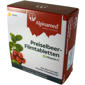 Die natürliche Hilfe bei HarnwegsinfektenAlpinamed Preiselbeer Filmtabletten enthalten spezielle Pflanzeninhaltsstoffe, die das Auftreten von Balsenentzündungen verhindern können. Für die Entstehung eines Harnwegsinfekts müssen Erreger an die Blasenschleimhaut anhaften und dort Entzündungsreaktionen in Gang setzen können. Presielbeeren enthalten verschiedene Pflanzenstoffe, die dieses Andocken und somit auch die unangenehmen Begleiterscheinungen eines Infekts verhindern können.Je nach Schwere der Symptome können 2-12 Filmtabletten über den Tag verteilt eingenommen werden. Neben den natürlichen Pflanzenextrakten sind in Alpinamed Preiselbeer Filmtabletten zusätzlich noch Vitamin C und Magnesium zur Unterstützung des Effekts enthalten.Weitere Bestandteile: Magnesiumcitrat, Maltodextrin, L-Ascorbinsäure (Vitamin C); Trennmittel: Polyvinylpyrrolidon, Magnesiumstearat, Siliziumdioxid; Überzugsmittel: Hydroxypropylcellulose, Hydroxypropylmethylcellulose, Talkum; Farbstoffe: Titandioxid, Eisenoxidrot, KarminsäureZusätzliche Tipps für eine gesunde Blase• Spülen Sie Ihre Blase, indem Sie viel Wasser und ungesüßte Getränke zu sich nehmen.• Sobald Sie einen Harndrang verspüren, gehen Sie sofort auf die Toillette (auch nach dem Geschlechtsverkehr)!• Ernähren Sie sich gesund, bewusst und ausgewogen, um Ihrem Körper und Immunsystem die nötigen Nährstoffe zuzuführen!