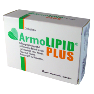 ArmoLIPID PLUS enthält Berberin, roten Hefereis, Policosanol, Folsäure, Coenzym Q 10 und Astaxanthin.