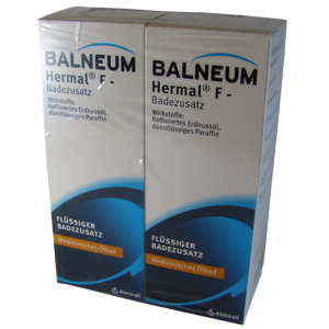 Balneum Hermal F - Badezusatz ist ein rückfettendes medizinisches Ölbad zur Bereitung von Teil-, Voll- und Duschbädern.Balneum Hermal F - Badezusatz verteilt sich in Form von kleinen Öltropfen im Badewasser, so dass eine milchige Emulsion entsteht. Auf diese Weise führt Balneum Hermal F - Badezusatz in angenehmer Weise schon während des Badens zu einer intensiven Rückfettung der Haut. Das Herauslösen der natürlichen Feuchthaltefaktoren (sog. natural moisturising factors: NMF) aus der obersten Hautschicht während des Badens wird vermindert. Diese Feuchthaltefaktoren binden Wasser in der Haut und tragen so zur Aufrechterhaltung der Hautfeuchte entscheidend bei.
