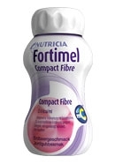 Fortimel Compact Fibre ist eine vollbilanzierte, hochkalorische Trinknahrung mit Ballaststoffen. Fortimel Compact Fibre in der 125 ml-Flasche: weniger Volumen, mehr Nährstoffe! Endlich auch mit Ballaststoffen - zur Verbesserng der Darmfunktion!IndikationenAlters- oder krankheitsbedingter MangelernährungErhöhtem Energie- und NährstoffbedarfFlüssigkeitsrestriktionen wie z.B. Niereninsuffizienz, Herz- und Leberinsuffizienz, kardialer KachexieGestörte Darmflora (z.B. nach Antibiotikatherapie, nach Strahlentherapie)konsumierenden Erkrankungen, z.B. Tumorerkrankungen, HIV/ AIDS, InfektionenKontraindikationenFortimel Compact Fibre darf nicht eingesetzt werden, wenn sich eine enterale Nährstoffzufuhr generell verbietet oder Intoleranzen gegenüber einem der enthaltenen Inhaltsstoffe bestehen.Fortimel Compact Fibre ist nicht geeignet für Kinder unter 3 Jahren. Bei Kindern von 3-6 Jahren mit besonderer Vorsicht anwenden.Nicht geeignet für Patienten, die eine ballaststofffreie Diät benötigen oder für Patienten mit Galaktosämie.Merkmalebesonders hohe Energiedichte (2,4 kcal/ml)glutenfreilaktosearm (<1 g/100 g)vollbilanziertDosierungBei ausschließlicher Ernährung erhalten:* Erwachsene: 30 kcal pro kg Körpergewicht und Tag / 1 Trinkflasche pro 10 kg Körpergewicht* Heranwachsende: 40 - 50 kcal pro Körpergewicht und Tag / 1,5 Trinkflaschen pro 10 kg KörpergewichtBei ergänzender Ernährung werden 1 - 3 Flaschen pro Tag zu den normalen Mahlzeiten empfohlen.InhaltsstoffeWasser, Glukosesirup, Milcheiweiß, pflanzliche Öle (Rapsöl, Sonnenblumenöl), Ballaststoffe (Oligofruktose, Galaktooligasaccharide (aus Milchuzucker)Pektin, Inulin), Trehalose, Trikaliumcitrat, Emulgator (Sojalecithin), Aroma (Vanille), Dimagnesiumphosphat, Cholinchlorid, Kaliumchlorid, Trinatriumcitrat, Natrium-L-ascorbat, Maltodextrin, Eisenlaktat, Zinksulfat, Nikotinamid, DL-Alpha-Tocopherylacetat, Farbstoff (Curcumin), Retinylacetat, Kupferglukonat, Natriumselenit, Mangansulfat, Chrom-III-chlorid, Calcium-D-Pantothenat, D-Biotin, Cholecalciferol, Pteroylmonoglutaminsäure, Thiaminhydrochlorid, Pyridoxinhydrochlorid, Natriummolybdat, Natriumfluorid, Riboflavin, Phytomenadion, Kaliumjodid, Cyanocobalamin.Bei Cappuccino: Aroma (Cappuccino), Farbstoff (E 150d)Bei Erdbeere: Aroma (Erdbeere) Inhaltsstoff100ml125mlPhys.Brennwert240kcal300,0kcalBroteinheiten2,1BE2,6BEEiweiß9,4g11,8gKohlenhydrate25,2g31,5gdavon: Zucker13,9g17,4g* Glukose0,5g0,6g* Lactose0,6g0,8g*Maltose8,6g10,8gFett10,4g13,0gdavon: gesätt. FS1,1g1,4geinfach unges. FS6,3g7,9gmehrfach unges. FS3g3,8gOmega-3-Fettsäuren0,47g0,6gBallaststoffe3,6g4,5gWasser63g78,8gMineralstoffe Natrium83mg103,8mgKalium229mg286,3mgChlorid91mg113,8mgCalcium174mg217,5mgPhosphor174mg217,5mgMagnesium33mg41,3mgSpurenelemente Eisen3,8mg4,8mgZink2,9mg3,6mgKupfer430µg537,5µgJod32µg40,0µgChrom16µg20,0µgFluor0,2µg0,3µgMangan0,8µg1,0µgMolybdän24µg30,0µgSelen14µg17,5µgVitamine Vitamin A (RE)240µg300,0µgVitamin D31,8µg2,3µgVitamin E (alpha-TE)3mg3,8mgVitamin K13µg16,3µgVitamin C24mg30,0mgVitamin B10,4mg0,5mgVitamin B20,4mg0,5mgNiacin (NE)4,3mg5,4mgVitamin B60,4mg0,5mgFolsäure64µg80,0µgPantothensäure1,3mg1,6mgVitamin B120,5µg0,6µgBiotin9,6µg12,0µgAndere Stoffe Cholin88mg110,0mgNährstoffrelation Eiweiß15,7Energie %15,7Energie %Fett39,3Energie %39,3Energie %Kohlenhydrate42Energie %42Energie %Ballaststoffe3Energie %3Energie %Osmolarität790mosmol/l790mosmol/lOsmolalität1.260mosmol/kg1.260mosmol/kg