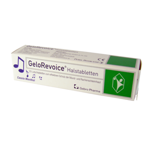 Halskratzen? Heiser? Stimme weg?Symptome wie Halskratzen, Hustenreiz oder eine trockene Schleimhaut sind sehr unangenehm, gerade wenn man auf seine Stimme angewiesen ist. Immer mehr Menschen sind betroffen, dabei sind die Ursachen dafür sehr vielfältig wie z. B.: hohe Beanspruchung der Stimme, trockene Luft, Heuschnupfen,…. Speziell für diese Symptome wurden GeloRevoice® Halstabletten entwickelt. Mit dem einzigartigen Hydrogel-Komplex werden Reizungen in Mund- und Rachenraum effektiv gelindert.GeloRevoice® Halstabletten dienen zum effektiven Schutz der Mund- und Rachenschleimhaut. Diese kann durch viele Faktoren gereizt werden, dazu zählen u. a.:hohe Beanspruchung der Stimme,eingeschränkte Nasenatmung (z. B. durch Erkältung),trockene Luft bedingt durch Heizung oder Klimaanlagen,Pollenallergie (Heuschnupfen),Rauchen.Die Folgen können Heiserkeit, Kratzen im Hals, Hustenreiz sowie eine trockene Schleimhaut und daraus resultierende Halsschmerzen sein. Durch den Schutzfilm der GeloRevoice® Halstabletten wird die Schleimhaut vor weiteren Angriffen geschützt.Einnahme & DosierungJe nach Bedarf können Sie mehrmals täglich, z. B. alle 2 – 3 Stunden, eine GeloRevoice® Halstablette lutschen. Es können bis zu 6 Tabletten täglich angewendet werden. Wir empfehlen Ihnen die Einnahme nach dem Essen.