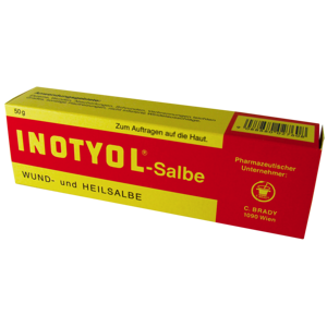 Wie ist Inotyol Salbe anzuwenden? Falls vom Arzt nicht anders verordnet, Inotyol-Salbe ein- bis zweimal täglich messerrückendick auftragen und verbinden. Bei Hautschäden in den Falten der Leistengegend, des Gesäßes oder unter den Brüsten die Salbe auf Gazestreifen aufstreichen und in die Hautfalten legen.