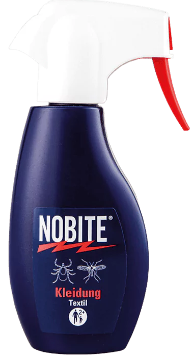 Mit Nobite imprägnierte Kleidung schützt bis zu einem Monat gegen Insekten (Mücken, Sandfliegen, ...) sowie Zecken und Herbstgrasmilben.