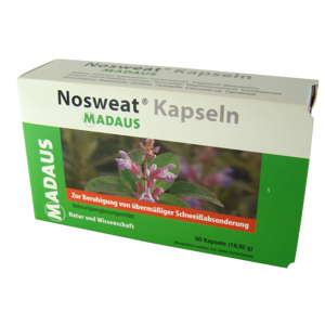 Nosweat Kapseln enthalten 120 mg Salbeiextrakt und wirken beruhigend bei übermäßiger