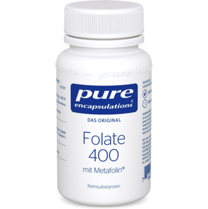 Das besondere an Pure Encapsulations® Folate 400 ist, dass es Metafolin® enthält. Das ist die Calciumverbindung der im Körper bereits natürlich vorkommenden bioaktiven Form von Folsäure (5-MTHF). Metafolin® ist direkt für den Organismus verfügbar, da es im Gegensatz zu Folsäure nicht mehr über das Enzym "MTHFR" aktiviert werden muss und ist daher auch bei Frauen effektiv, die Folsäure nur suboptimal in bioaktives Folat umwandeln können. Einen besonders hohen Stellenwert besitzt Folsäure bei Kinderwunsch, in der Schwangerschaft und Stillzeit, da es schwierig ist, die empfohlene Menge an Folat mit der Nahrung aufzunehmen. Eine ausreichende Versorgung mit Folsäure ist für die Zellteilung und Entwicklung des Fötus von Bedeutung.Gesundheitlicher Nutzen der InhaltsstoffeSicherung einer effektiven Folat-Versorgung von Anfang anfür Frauen mit Kinderwunsch, in der Schwangerschaft und Stillzeitbei reduzierter Folsäure-Zufuhr über die Ernährung oder erhöhtem BedarfFolat trägt zum Wachstum des mütterlichen Gewebes während der Schwangerschaft bei und hat eine Funktion bei der ZellteilungFolat trägt zu einer normalen Aminosäure-Synthese ("Aufbaustoffwechsel") beiFolat trägt zur normalen psychischen Funktion und Verringerung von Müdigkeit und Ermüdung beidie ergänzende Aufnahme von Folsäure erhöht bei Schwangeren den Folat-Spiegel.