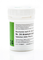 Arsenum jodatum ist ein wichtiges Hautmittel - eingesetzt vor allem bei nässenden Ekzemen und jugendlicher Akne. Es ist Bestandteil der Allergiemischung. Arsenum iodatum dämpft überschießende oxidative Prozesse und stärkt die Regenerationsbestrebungen des Organismus.Wirkung:Die Mineralstoffe nach Dr. Schüssler verstehen sich in ihrer Anwendung als Regulationstherapie, bestens geeignet zur Gesundheitspflege und Vorbeugung von Krankheiten, bzw. zur Begleitung oder Unterstützung einer ärztlichen Therapie, ganz im Sinne einer komplementärmedizinischen Anwendung. Dr. Schüssler unterscheidet zwischen Betriebsstoffen (Funktionsmittel in den Zellen) und Baustoffen, die für den Aufbau des Körpers nötig sind.Die Mineralstoffe sind so verdünnt, dass sie auf direktem Weg über die Mundschleimhaut in Gewebe und Blut aufgenommen werden. Schüssler Salze sind homöopathisch zubereitete, potenzierte Arzneimittel hoher Qualität, die dem Körper wegen eines Mangels an Betriebsstoffen (Funktionsmitteln) in den Zellen zugeführt werden.Anwendung:Die Anwendung ergibt sich aus den beschriebenen Funktionen der Mineralstoffe. Tabletten im Mund zergehen lassen oder portionsweise über den Tag verteilt in Wasser lösen und schlückchenweise einnehmen. Die Dosierung richtet sich nach der Stärke des Bedarfs.Besondere Hinweise:Bereits ab dem Säuglingsalter anwendbar.Produktinfo