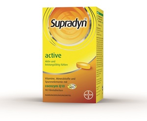 Aktiviert natürliche EnergieDie Vitamine B1, B2, B6, B12, Biotin, Niacin, Pantothensäure und Vitamin C sowie Eisen, Kupfer, Jod und Mangan tragen zu einem normalen Energiestoffwechsel bei. Antioxidantien gegen oxidativen StressDie Vitamine C und E sowie Selen & und Zink schützen die Zellen vor oxidativem Stress durch freie Radikale.Nebenwirkungen, Wechselwirkungen und sonstige wichtige Informationen: siehe GebrauchsinformationGebrauchsinformation Supradyn Active Filmtabletten