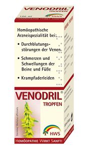 Die Anwendungsgebiete:Durchblutungsstörungen der Venen mit SchweregefühlSchmerzen und Schwellungen der Füße und BeineKrampfaderleidenentsprechen den homöopathischen Arzneimittelbildern der Einzelbestandteile. Dazu gehören:Steinklee (Meliotus officinalis) Krampfadern - Venöse Stauungen - VenenthrombosenRosskastanie (Aesculus hippocastanum) Schwellungen der Füße - Varizen - schmerzhafte KrampfadernZaubernuss (Hamamelis virginiana) VenenentzündungMariendiestel (Silybum marianum) Krampfadern - Unterschenkelgeschwüre Wieviel und wie oft sollten Sie Venodril Tropfen einnehmen? Nehmen Sie Venodril Tropfen immer genau nach der Anweisung in der Packungsbeilage ein. Bitte fragen Sie bei Ihrem Arzt oder Apotheker nach, wenn Sie sich nicht ganz sicher sind. Falls vom Arzt nicht anders verordnet ist die übliche Dosis: Erwachsene: - bei plötzlich auftretenden, heftigen Beschwerden alle halbe bis ganze Stunde, höchstens 6-mal täglich, je 10 Tropfen einnehmen. - bei länger dauernder Verlaufsform 1-3 mal täglich je 20 Tropfen einnehmen. Bei Besserung der Beschwerden ist die Häufigkeit der Anwendungen zu reduzieren.Wie und wann sollten Sie Venodril Tropfen einnehmen? Die Tropfen werden nach Möglichkeit mit etwas lauwarmen Wasser verdünnt vor den Mahlzeiten eingenommen. Venodril Tropfen sind aufgrund ihrer Indikation nicht zur Anwendung an Kindern und Jugendlichen unter 18 Jahren bestimmt. Gebrauchsinformation: Venodril Tropfen Nebenwirkungen, Wechselwirkungen und sonstige wichtige Informationen: siehe Gebrauchsinformation