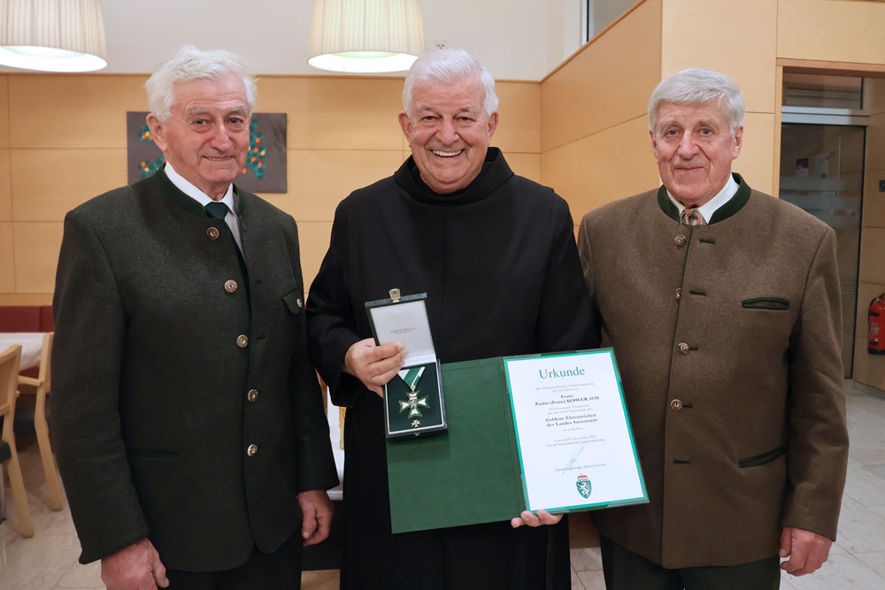 Seit inzwischen 56 Jahren lebt Frater Paulus, der in Deutschlandsberg geboren wurde, seine Berufung als Barmherziger Bruder, geprägt von Nächstenliebe und Engagement. Als ehemaliger Provinzial der Österreichischen Ordensprovinz und Prior der Krankenhäuser der Barmherzigen Brüder in Wien, Salzburg und Graz sowie aktuell als Prior des Krankenhauses der Barmherzigen Brüder in St. Veit/Glan und der Lebenswelten Steiermark war und ist er für die Entwicklung der Einrichtungen maßgeblich verantwortlich. Mit dieser Auszeichnung ehrt das Land einen Menschen, der seit Jahrzehnten mit Überzeugung und Haltung Gutes tut und es gut tut.