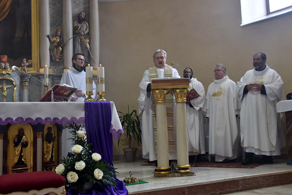 Durch dichtes Schneetreiben zog Frater Philipp gemeinsam mit Mitbrüdern, den Zelebranten und Ministranten vom Pfarrhaus hinauf zur Kirche, die bis auf den letzten Platz besetzt war. Neben seinen Eltern und Geschwistern, weiteren Familienmitgliedern und Freunden waren auch Provinzial Saji Mullankuzhy, Mitbrüder sowie Mitarbeitende aus Österreich anwesend. Den Gottesdienst zelebrierte Pater Pius Majerovic, Seelsorger im Krankenhaus der Barmherzigen Brüder in Bratislava. Musikalischen gestaltet wurde die Feier vom Kirchenchor aus einer Nachbargemeinde. Abgerundet wurde die Feier mit einem gemeinsamen Mittagessen in einem Restaurant.