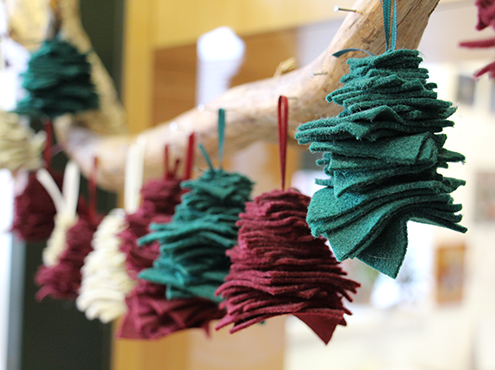 Mit eigenen Webstühlen und Strickmaschinen fertigen die KundInnen der Lebens- und Arbeitswelt textile Kunstwerke, von Teppichen bis zu wunderschönen Tischdecken an.