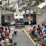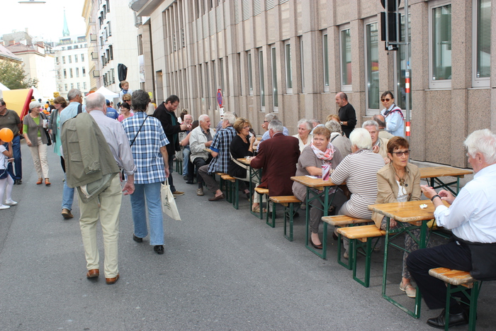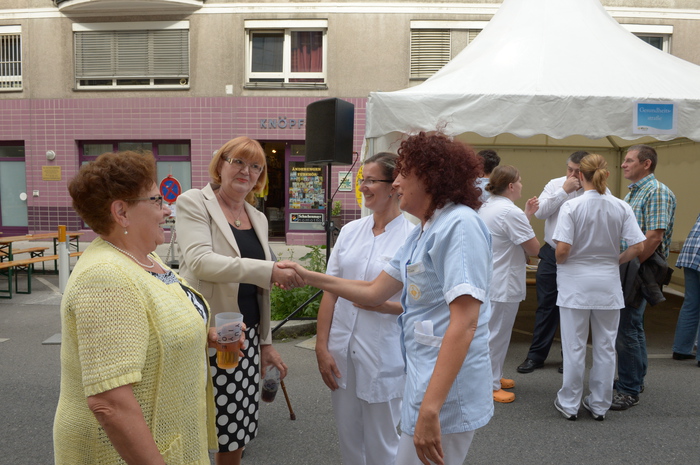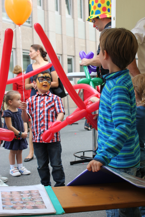 Die fleißigen Mitarbeiterinnen des Krankenhauses versorgten die Gäste auch mit Kaffee und Kuchen sowie Würstel oder einem vegetarischen Erdäpfelgulasch.Nicht nur Lufballons, sondern auch das Kinderschminken begeisterte die jüngsten Gäste.Die Bänke rund ums Krankenhaus füllten sich und die Straße wurde mit Leben gefüllt.