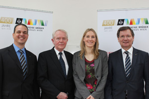 v.l.n.r.: Gesamtleiter Dr. Reinhard Pichler, Dr. Finn Klamer (Health ICT Development Advisor, Dänemark) Vaness Werner M.A. (Fraunhofer-Institut, Deutschland), Adolf Inzinger (Gesamtleiter der Österreichischen Ordensprovinz)