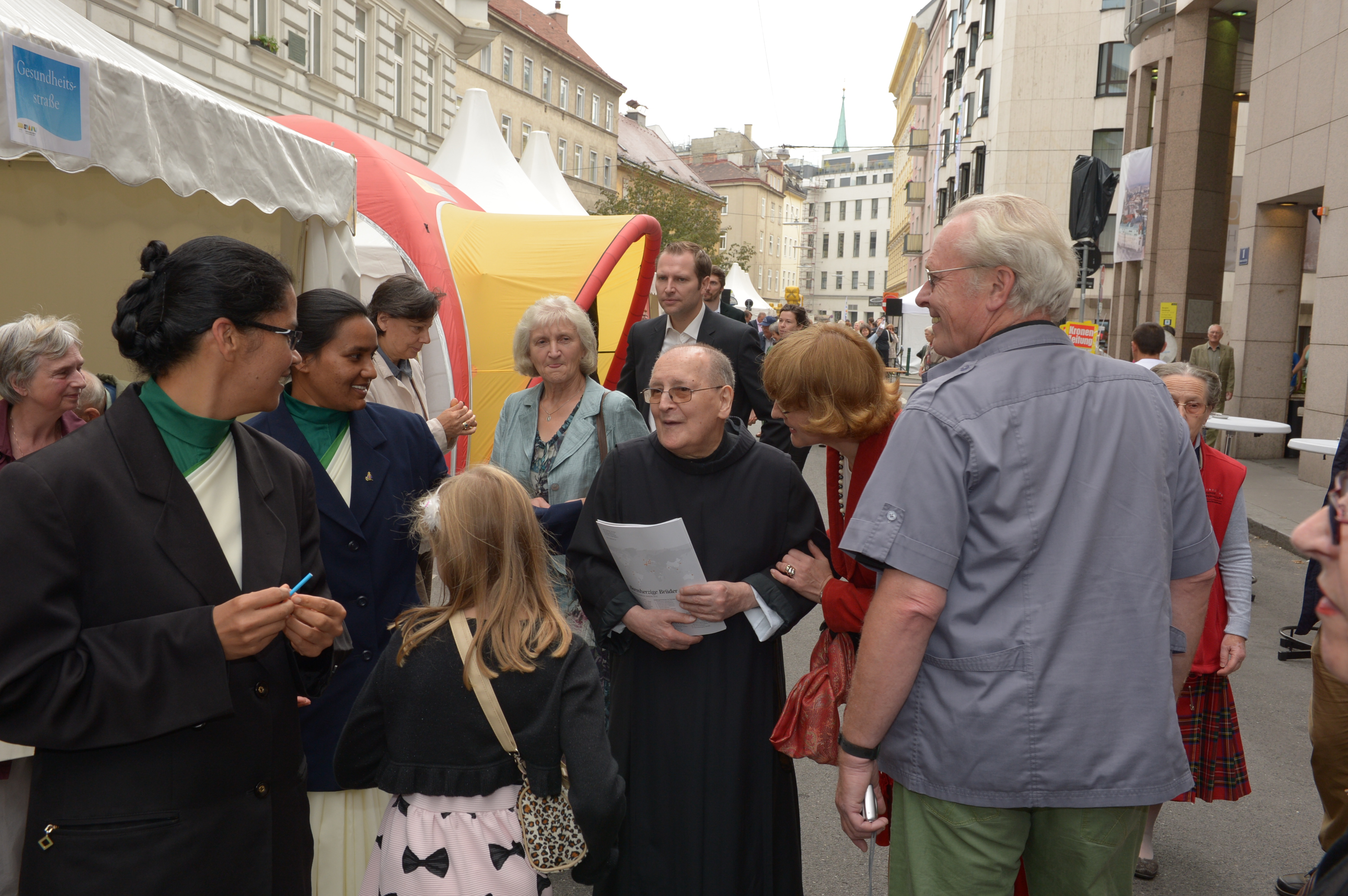 Frater Berthold Wöss OH inmitten der Leute am Straßenfest.