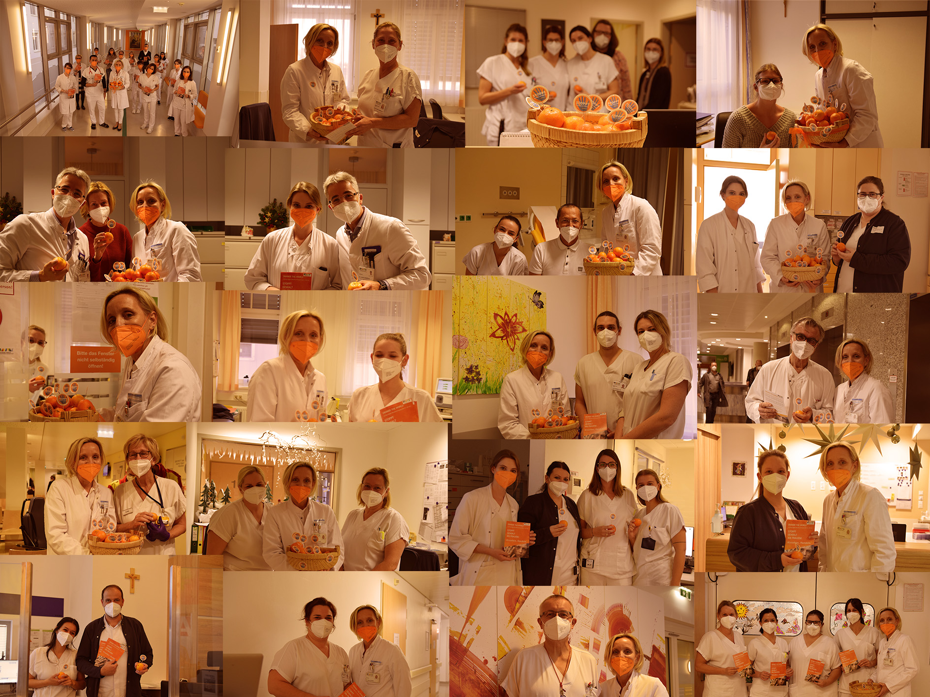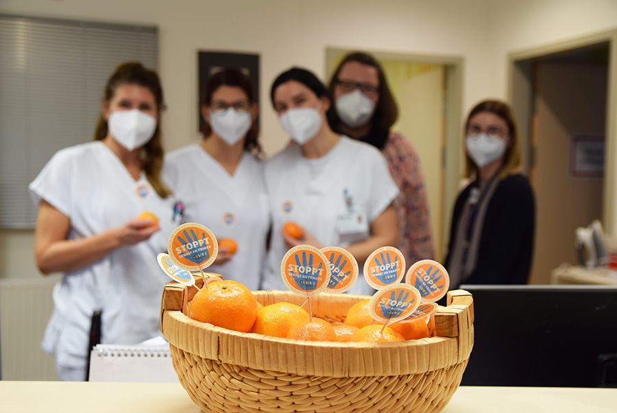 Mit Plakaten, Flyern und orangenen FFP2 Masken wird auch im Krankenhaus Barmherzige Brüder Eisenstadt auf die Kampagne aufmerksam gemacht, um einen Beitrag zur Enttabuisierung des Themas zu leisten. Der respektvolle und wertschätzende Umgang miteinander ist fest im Wertesystem der Barmherzigen Brüder verankert. Auch das verantwortungsvolle Handeln - das aufeinander Zugehen und nicht Wegsehen - wird aktiv gelebt „Unsere Mitarbeiterinnen und Mitarbeiter sind auf Früherkennung von Gewalt besonders geschult. In Verdachtsfällen von Gewalt ist besonders sensibler Umgang mit den Betroffenen gefragt,“ schärft Primar Dr. Ingrid Steindl, Vorsitzende der Opferschutzgruppe im Krankenhaus Barmherzige Brüder Eisenstadt das Bewusstsein.