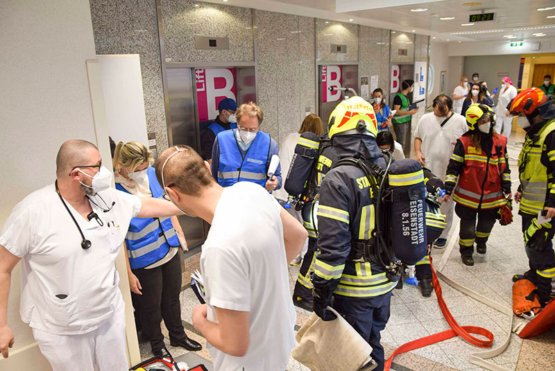 Ziel war, die Erreichbarkeiten und Abläufe eines Notfalls mit der Freiwilligen Feuerwehr Eisenstadt zu trainieren, sowie die Alarm- und Einsatzpläne im Krankenhaus einem routinemäßigen Stresstest zu unterziehen.