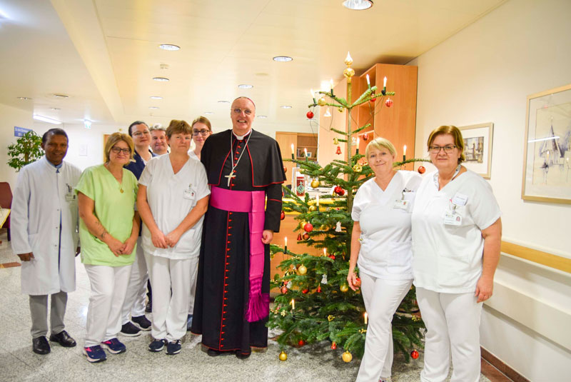 In seiner Ansprache ermutigt Diözesanbischof Dr. Ägidius Zsifkovics zu Mut zum Dienst am Mitmenschen. "Mut ist in diesem Hause spürbar, denn Mitarbeitende begegnen Patientinnen und Patienten, Angehörigen und untereinander oft in schwierigen Situationen. Das braucht Mut und Einsatz". Dafür spricht Bischof Zsifkovics allen seinen aufrichtigen Dank aus und wünscht ein frohes Weihnachtsfest.