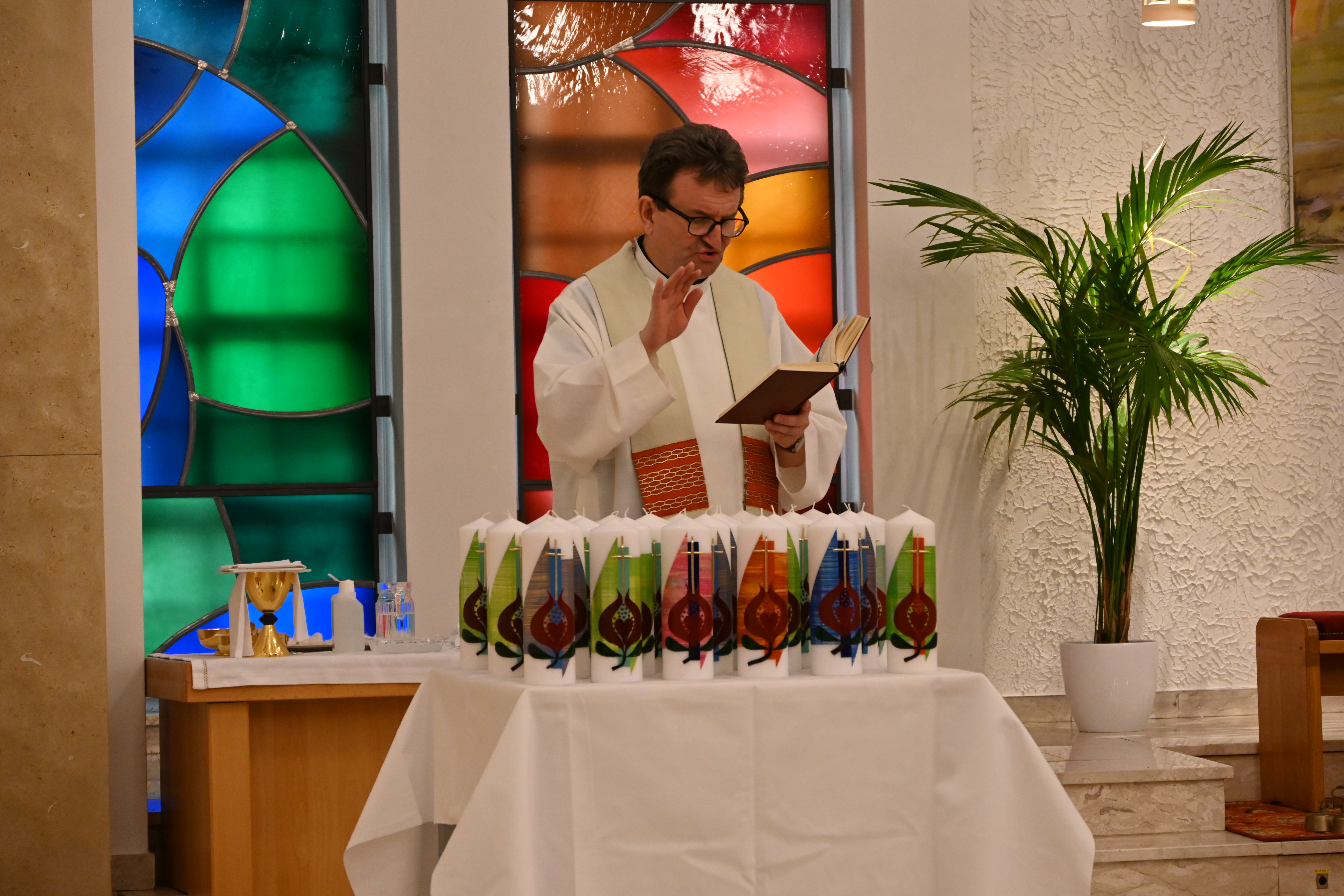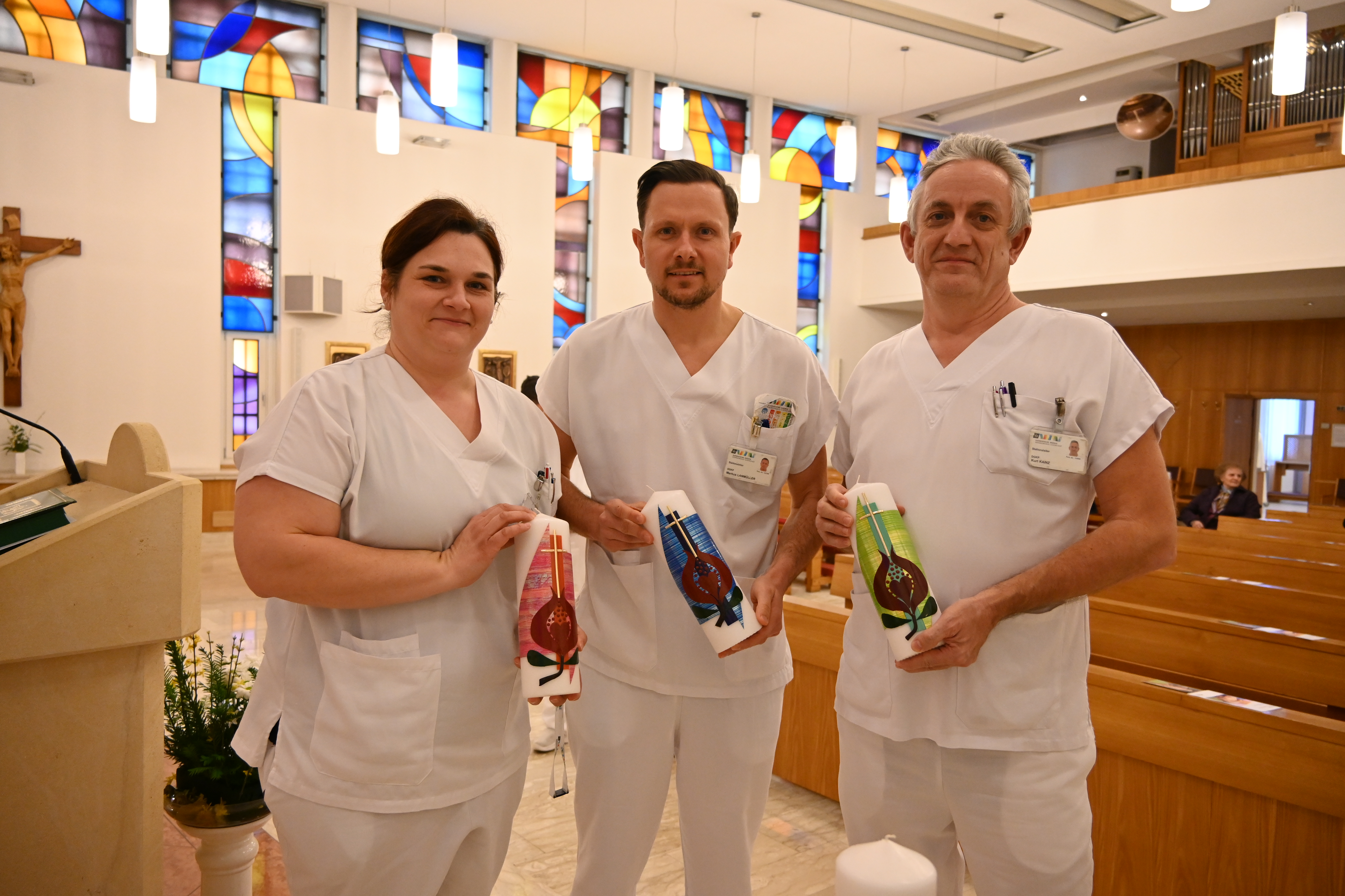 Heute gab es im Rahmen einer Messe die Gelegenheit, das Sakrament der Krankensalbung zu empfangen. Es soll Stärkung, Heilung und die Kraft zur Bewältigung schwieriger Situationen geben. Es kann jedem Gläubigen gespendet werden. Krankenhausseelsorger Josef Kuzmits segnete in diesem Rahmen auch die von Pater Prior Daniel Katzenschläger in Handarbeit gefertigten Kerzen für die Stationen.