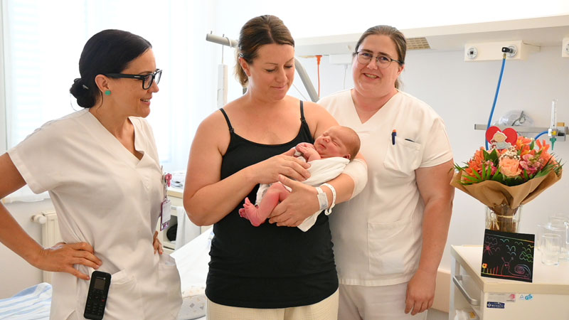 Emil hatte es besonders eilig und überraschte seine Mama Katrin und einige Passanten, als er spontan im Parkhaus des Krankenhauses der Barmherzigen Brüder Eisenstadt zur Welt kam.