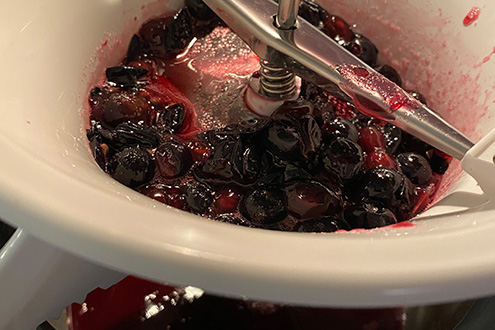 Am Bild zu sehen: die Weintrauben werden durch die "Flotte Lotte" gedreht.