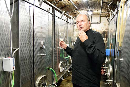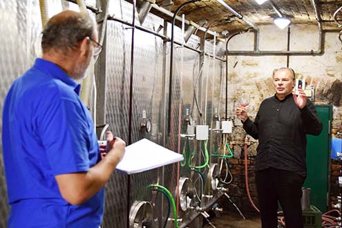 Im Rahmen der allmorgendlichen Visite im Klosterkeller führt Kellermeister Ing. Rudolf Krizan Riech- und Geschmacksproben durch. Das dient einerseits der Qualitätskontrolle, andererseits arbeitet er so daran, individuelle Weinkompositionen zu kreieren.