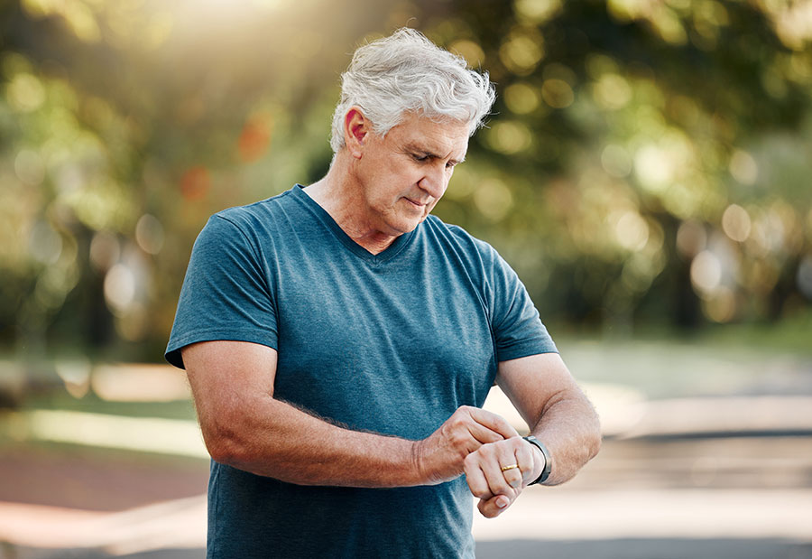 Will etwa jemand seinen Body-Mass-Index verbessern und abnehmen, gibt die Uhr einen guten Überblick zum täglichen Kalorienverbrauch. Vor allem Langzeitmesswerte sind hier aussagekräftig. Bewegungs- und Ernährungsgewohnheiten lassen sich mit der Uhr besser einordnen. Eine interessante Datensammlung, sicherlich auch für Diabetiker:innen. „Die Pulsüberwachungsfunktion ist nicht nur für Sportler:innen sinnvoll“, ist Dr. Voss überzeugt: „Oft zeigt erst die Smartwatch deutlich, wie körperlich anstrengend beispielsweise allein ein Spaziergang durch unwegsames Gelände sein kann. Via Smartwatch ist der Puls stets im Blick, um eine kontrollierte Belastung zu ermöglichen.“ Bei manchen Uhrenmodellen sind noch präzisere Messungen via Brustgurt möglich.