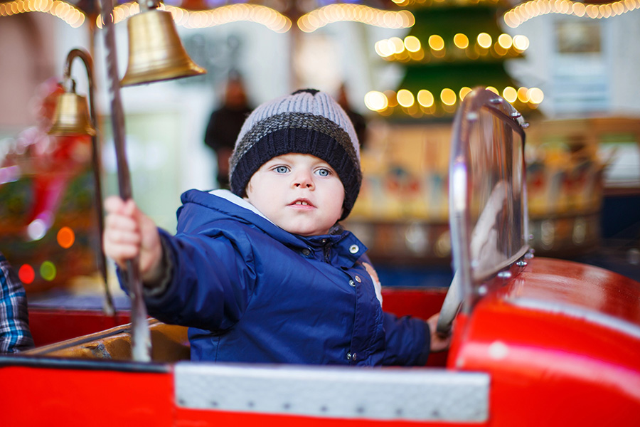 Jetzt standen wir vor einem klassischen Kinderkarussell, das sich langsam im Kreise drehte. Es gab da kleine Autos und Motorräder für die Jüngsten, es gab Pferdchen, die sich während der Fahrt auf und ab bewegten, und es gab ein etwas größeres, rotes Feuerwehrauto, in dem gerade ein vielleicht vierjähriger Bub saß und die Glocke erklingen ließ.