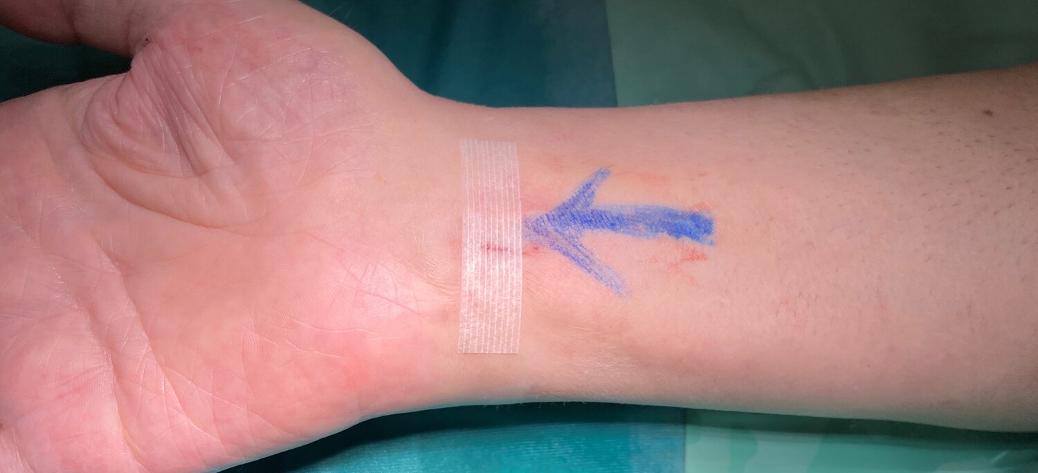 Karpaltunnelsyndrom - Ultraminimalinvasive Medianolyse Das Prinzip dahinter ist die ultraschallgezielte Durchtrennung des queren Handwurzelbandes (Lig. carpi transversum) ohne den üblichen Hautschnitt über dem mechanisch belasteten Handballen. Stattdessen wird handgelenksnah am Unterarm eine kleine Inzision durchgeführt und ein spezielles Hakenmesser unter Ultraschallsicht eingeführt. Mittels dieses Hakenmessers wird in weiterer Folge das Band durchtrennt und der Mittelnerv (N. medianus) dekomprimiert. Die Visualisierung der anatomischen Strukturen mittels Ultraschall sorgt dabei für maximale Sicherheit des Eingriffs, um die Risiken einer Nerven- oder Blutgefäßverletzung zu minimieren.