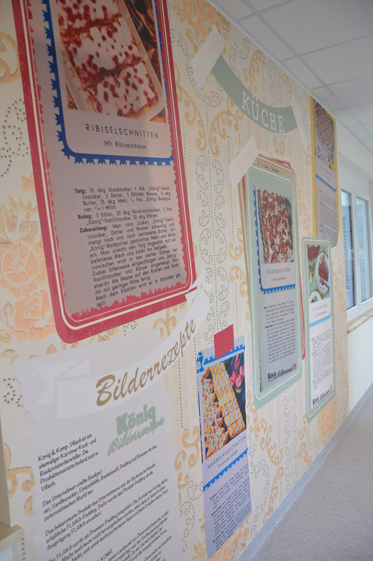 Die nostalgische Atmosphäre im Elisabethinen-Krankenhaus Klagenfurt wird durch eine besondere Erinnerung an die kulinarischen Genüsse der Vergangenheit bereichert. Die köstlichen Backrezepte der Firma König aus den 1960er Jahren, die viele PatientInnen sicher noch gut in Erinnerung haben, sind wahre Schätze. Dr. Haber lächelt, wenn sie diese Rezepte als "Goldstücke" bezeichnet. Eine Tapete, die mit Rezepten für Villacher Torte, Gitterkuchen, Ribiselschnitten und mehr bedruckt ist, ruft wohltuende Erinnerungen an glückliche Stunden in der Küche hervor, in denen das Backen und Genießen im Mittelpunkt standen.