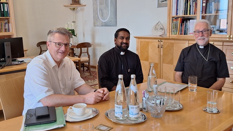 Antrittsbesuch: P. Jose Angelin Pokkaleparambil mit Diözesanbischof/škof Msgr. Dr. Josef Marketz (rechts) und Generalvikar Johann Sedlmaier.