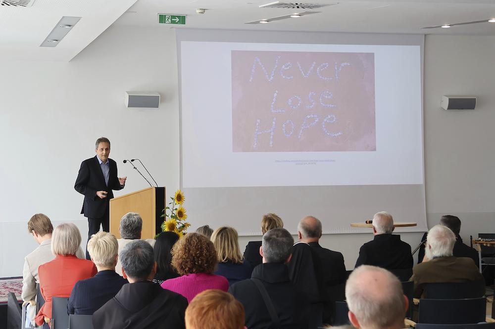 Am Vormittag beleuchtete Univ.-Prof. Dr. Reinhold Esterbauer in seinem Vortrag „Lebenskompass Hoffnung. Zum Zusammenhang von Zukunft und Hoffnung“ die theologische und anthropologische Tiefendimension des Hoffnungsbegriffs. Hoffnung, so Esterbauer, sei nicht mit einfachem Optimismus zu verwechseln. Sie garantiere keinen guten Ausgang, verleihe aber die Gewissheit, dass verantwortliches Handeln Sinn hat – gerade unter unsicheren Bedingungen. Und „Hoffnung bewährt sich auch dann, wenn es schlecht ausgeht. Sie trägt eine Grundüberzeugung in sich: Das was ich tue ist gut und sinnvoll.“