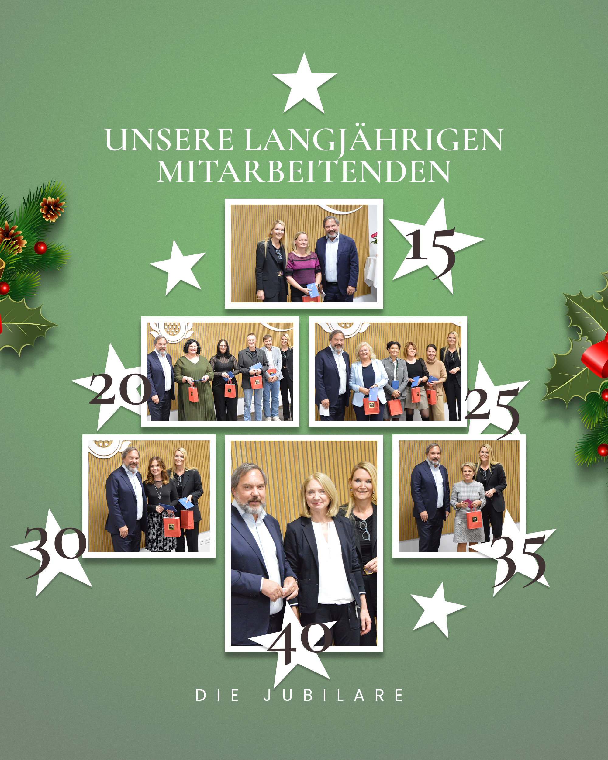 Insgesamt 18 Jubilare wurden für ihre langjährige Treue ausgezeichnet. Drei Mitarbeitende wurden für 15 Dienstjahre geehrt, fünf für 20 Dienstjahre, drei für 25 Dienstjahre, weitere fünf für 30 Dienstjahre sowie eine Mitarbeiterin für 35 Dienstjahre. Besonders hervorzuheben ist zudem eine Mitarbeiterin, die auf beeindruckende 40 Dienstjahre zurückblicken kann. Gemeinsam stehen die Geehrten für insgesamt 445 Dienstjahre – ein starkes Zeichen für die tiefe Verbundenheit mit dem Ordenskrankenhaus.