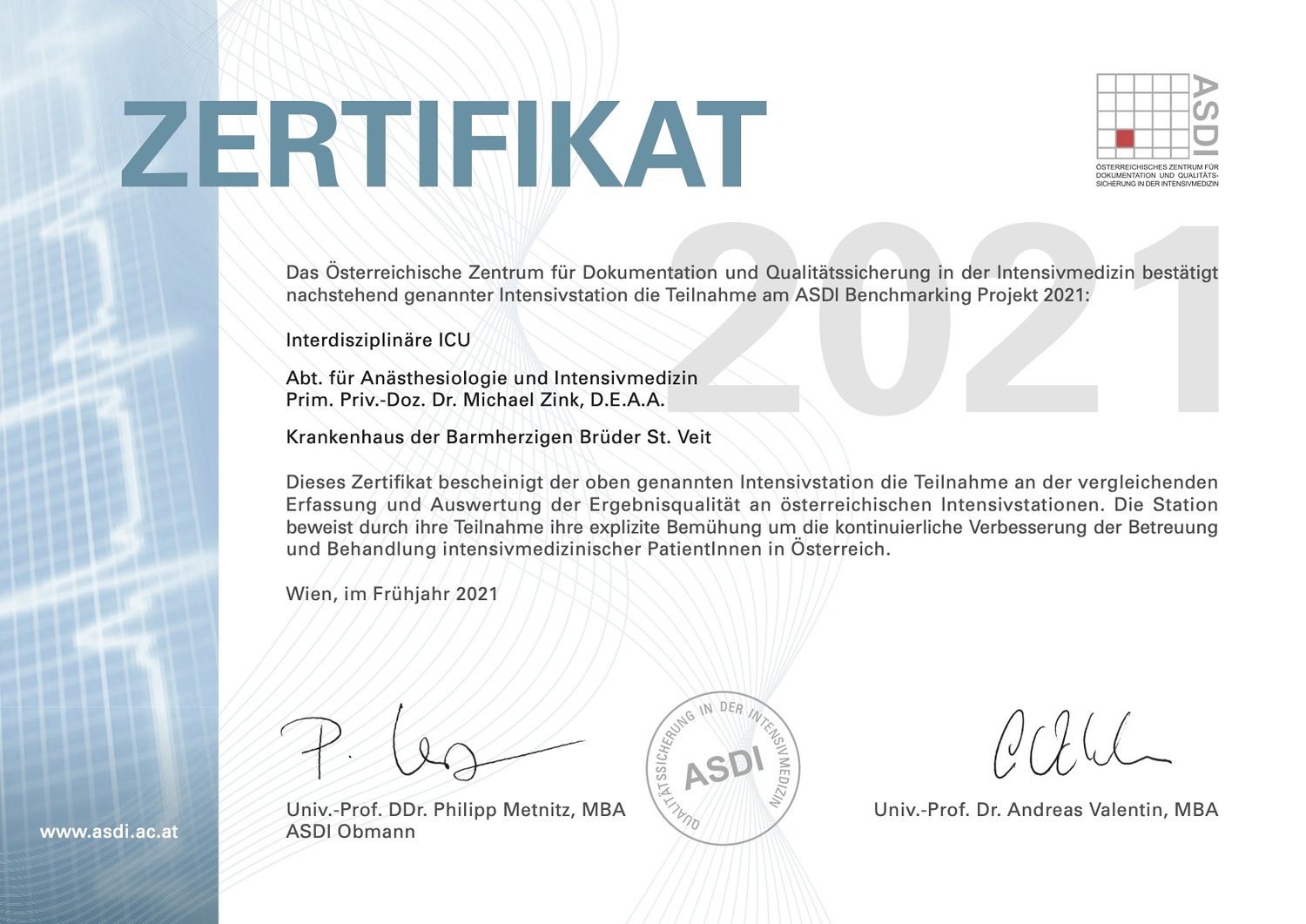 ASDI ist ein Verein, welcher über eine Software Ereignisse und Ergebnisse der Intensivtherapie genau vergleicht und ein österreichweites Benchmarking über mehr als 100 Intensivstationen erlaubt. Durch die Auswertung der Daten können wir genau nachvollziehen, in welchen Bereichen Verbesserungsmaßnahmen für eine weitere Optimierung der Ergebnisse für unsere Patienten umzusetzen sind.