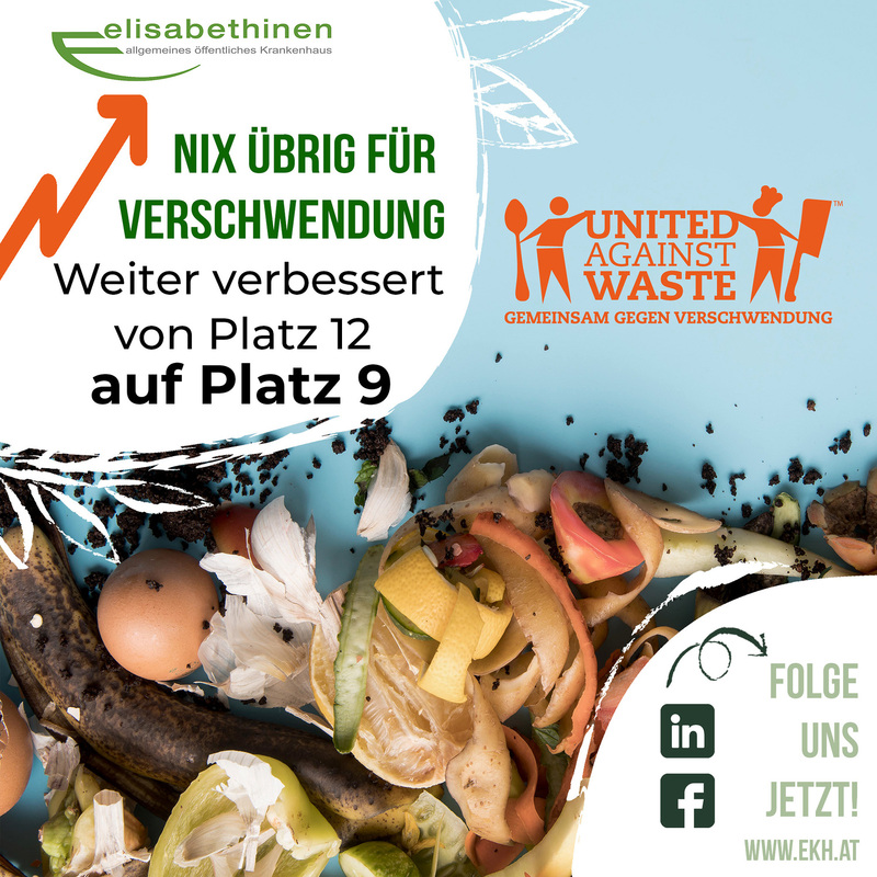 Mit 22 % Verlustgrad (exklusive Zubereitungsreste) zählt das Elisabethinen-Krankenhaus Klagenfurt zu den besten 9 von 47 österreichischen Krankenhausstandorten, die am Abfallmonitoring teilnahmen. Im Jahr 2022 belegte das Ordenskrankenhaus noch Platz 12.