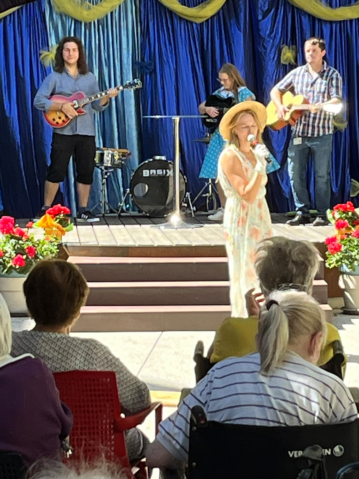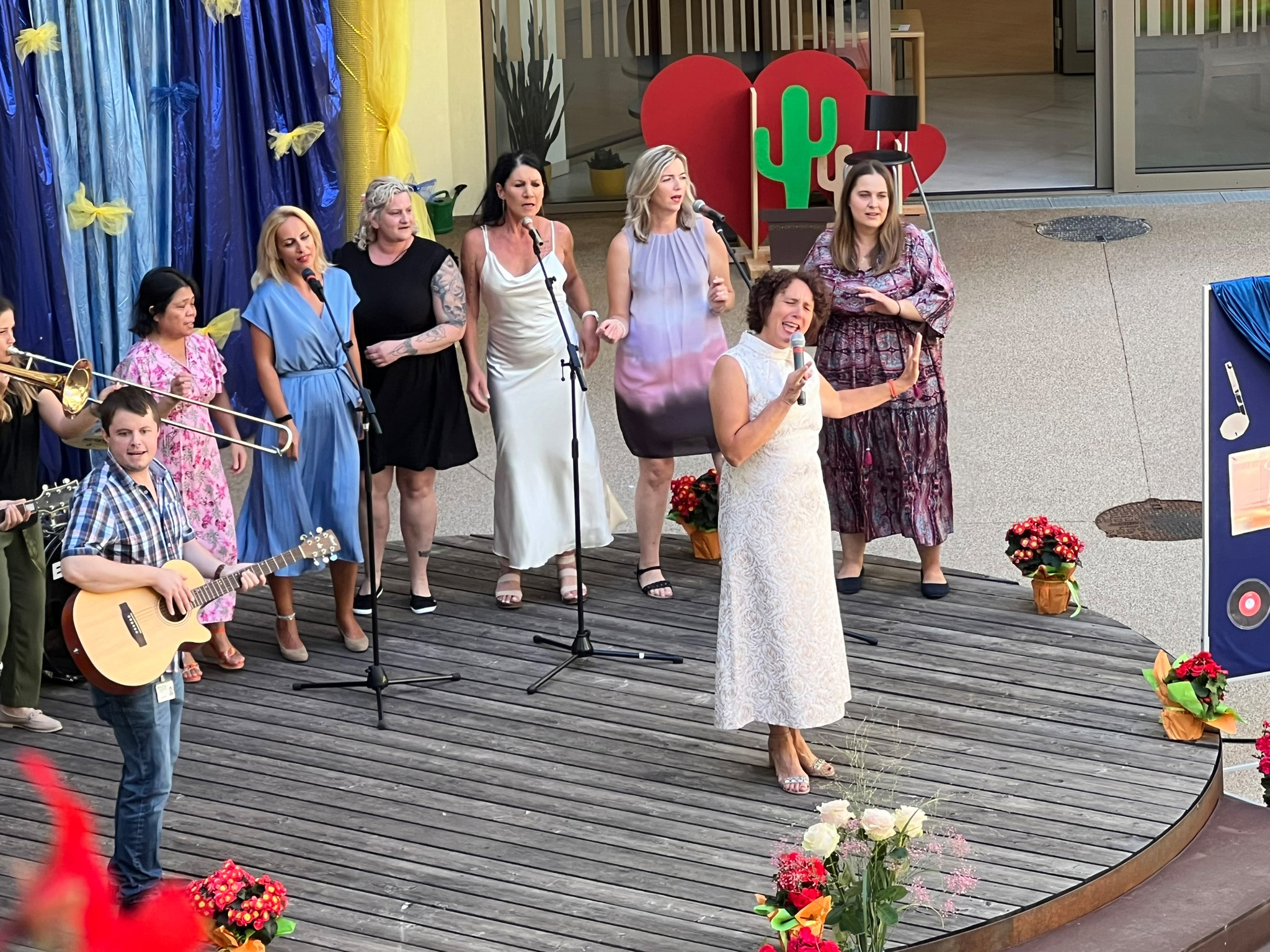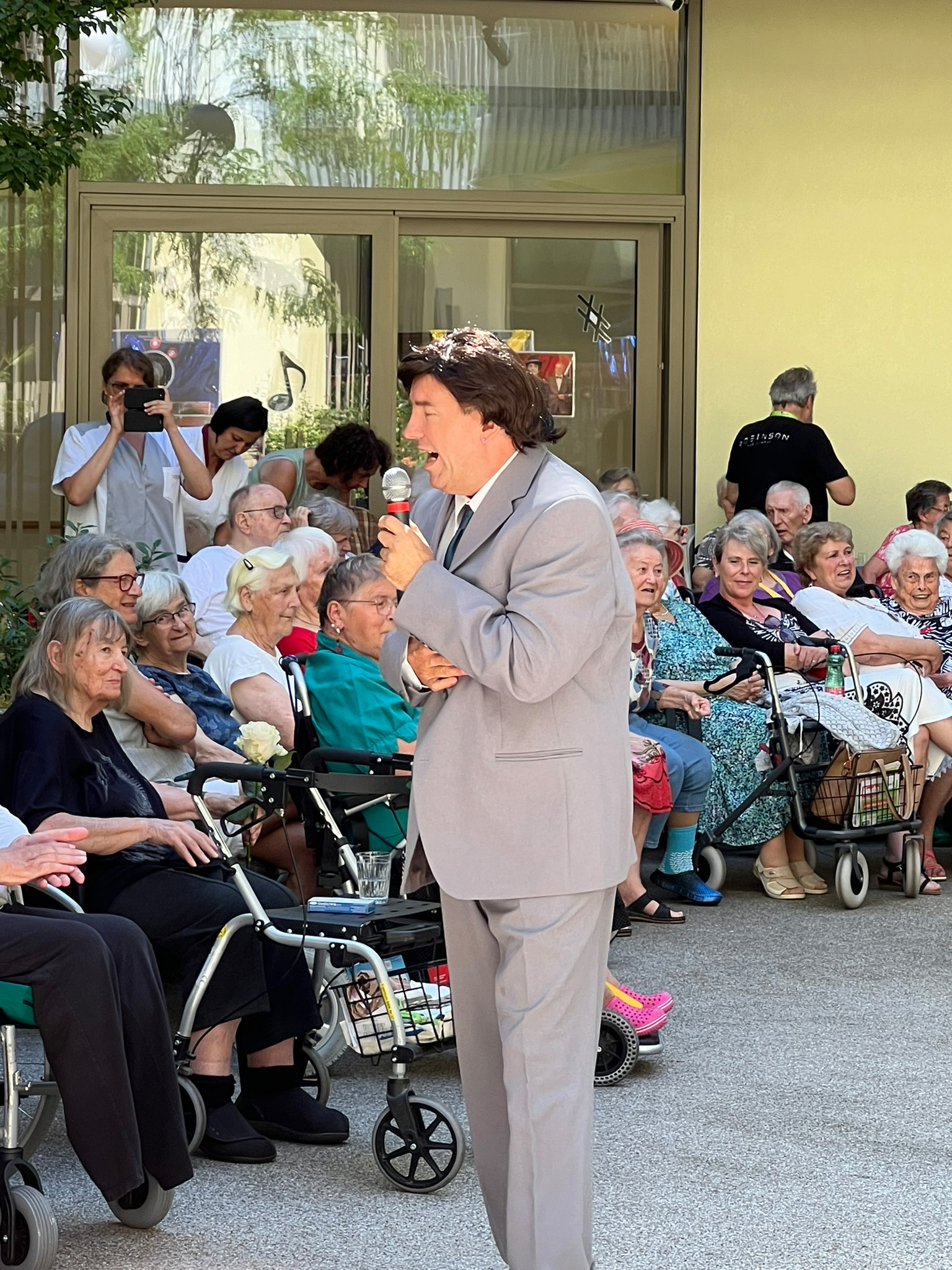 Mit Sonnenschein und mitreißenden Klängen lockte die Veranstaltung nicht nur Bewohner*innen, auch Angehörige und Besucher*innen waren gekommen, um gemeinsam einen unvergesslichen Nachmittag zu genießen. Von den Mitarbeitenden des Hauses mit Leidenschaft und Talent interpretiert, erwachten die unsterblichen Hits von Lynn Anderson, Udo Jürgens bis Ben Zucker vergangener Jahrzehnte zu neuem Leben. Eine Erinnerung an Roy Black durfte natürlich nicht fehlen. Mit dem Lied „Holiday am Wörthersee“ hat er allen unvergessliche Momente beschert.