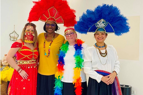 Mit viel Liebe zum Detail wurde der Saal geschmückt: bunte Tücher, funkelnde Lichter und orientalische Dekorationen sorgten für eine festliche Atmosphäre. Mitarbeitende erschienen in farbenfrohen Gewändern, einige trugen Turbane, Schleier oder funkelnde Accessoires, passend zum Thema des Nachmittags.