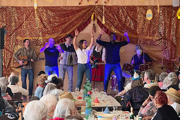 Die zweistündige Playbackshow der Mitarbeitenden, die mit viel Engagement und Humor alte Schlagerklassiker bis hin zu modernen Schlagertiteln präsentierten fand bei den Gästen großen Anklang. Die ausgelassene Stimmung steckte alle an, und so wurde zwischen den Einlagen getanzt, gesungen und geschunkelt. Natürlich durften auch die traditionellen Faschingskrapfen nicht fehlen.