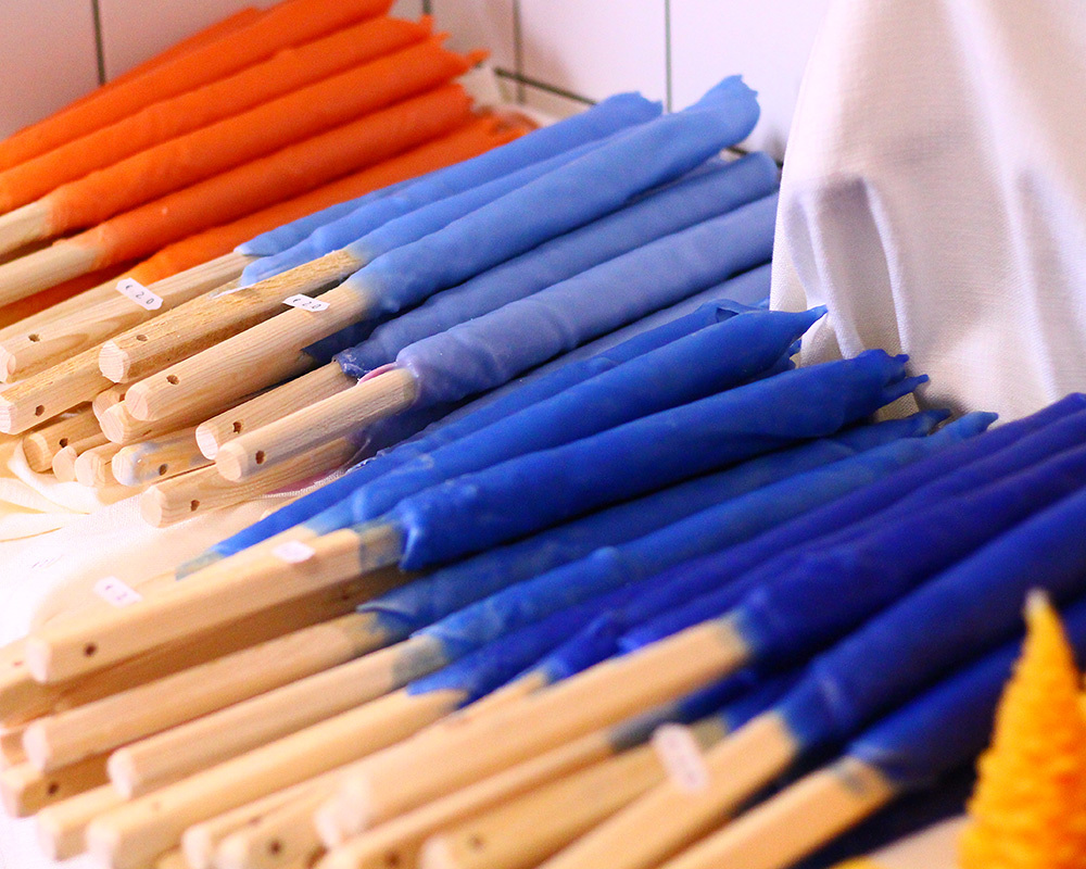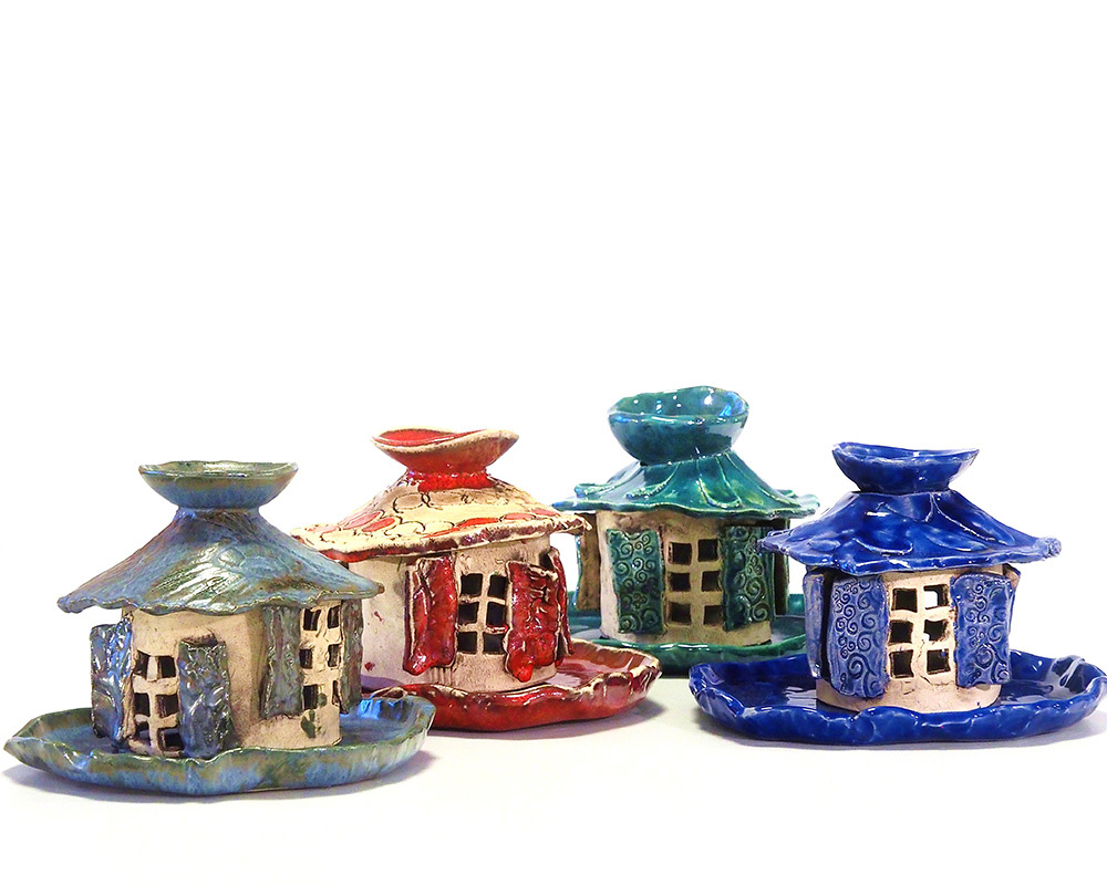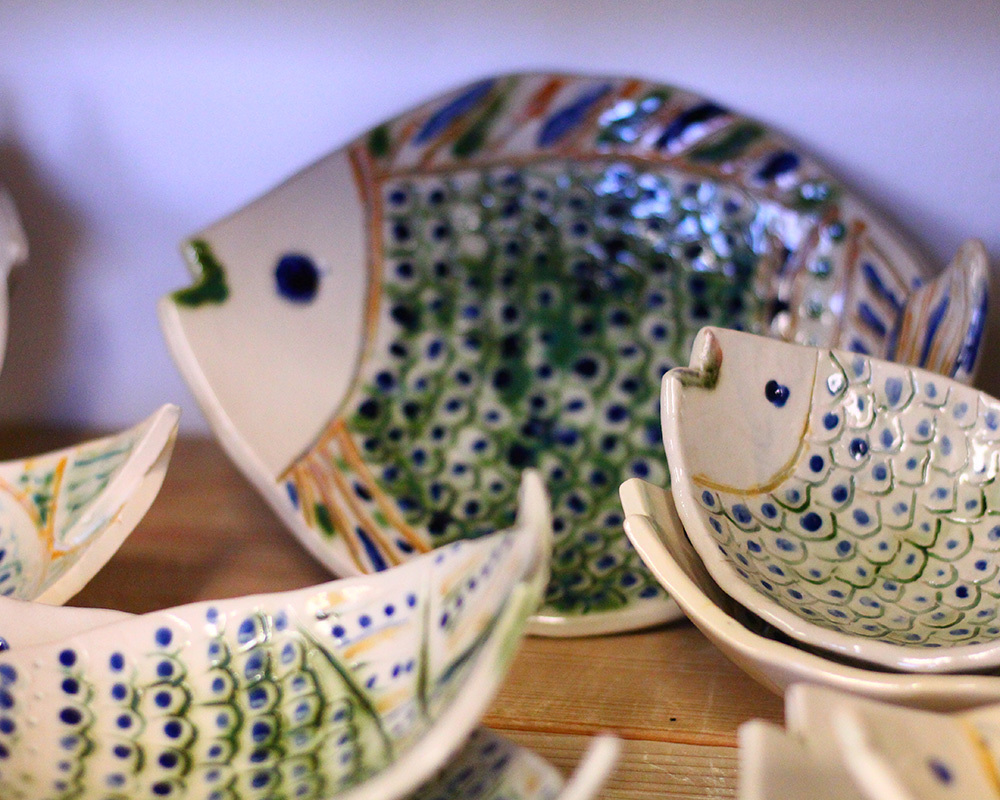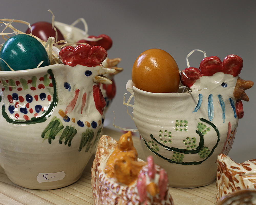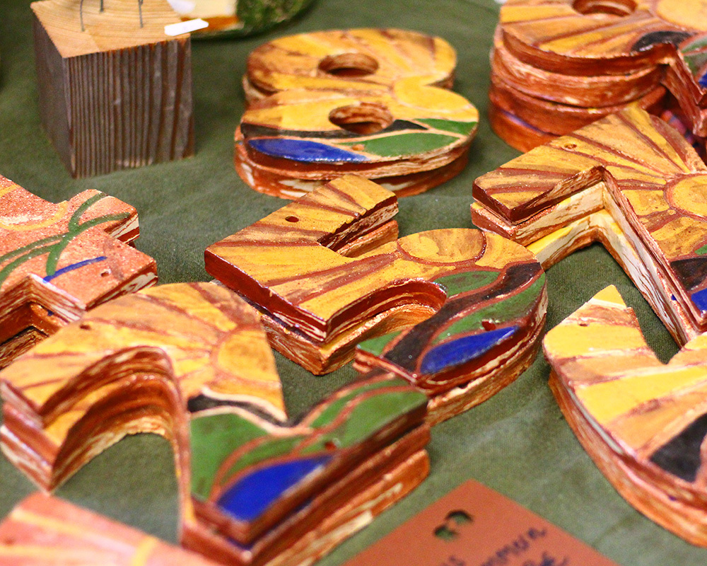 An den Lebenswelt-Standorten gibt es unterschiedliche Werkstätten, in denen mit unterschiedlichen Materialen gearbeitet wird. Zum Beispiel mit Keramik, Holz, Flechtmaterial und Textilien.