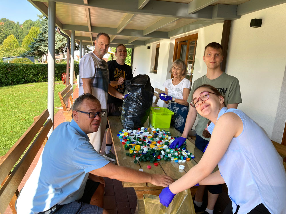 Die Stöpselaktion zeigt, wie soziales Engagement und Umweltbewusstsein Hand in Hand gehen. Bewohner*innen der Wohngruppe Pirkenhof und begleitete Mitarbeiter*innen des TaB-Stützpunktes (Stützpunkt für Teilhabe an Arbeit und Beschäftigung) sortieren geduldig die bunten Verschlüsse, bis ganze Säcke gefüllt sind, die anschließend an den Verein weitergegeben werden. Bei der letzten Übergabe waren es acht volle Säcke und ein großer Karton im Bauhof Bad Blumau.
