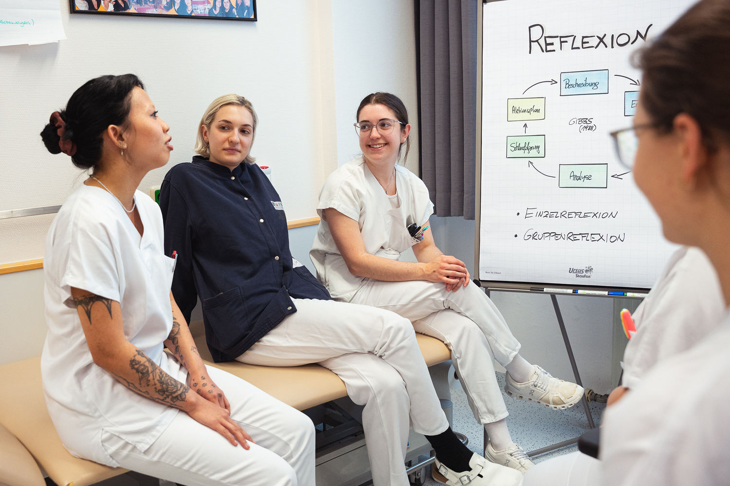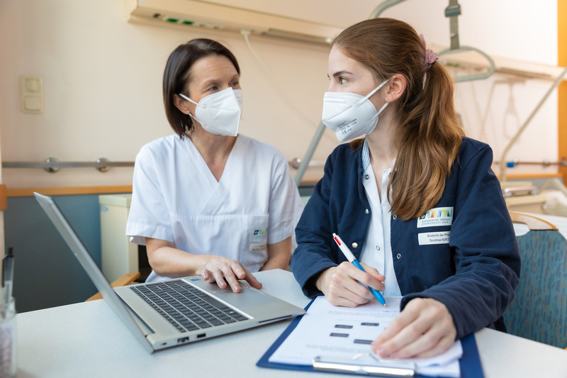 Fertigkeiten müssen vor dem Berufspraktikum trainiert und geübt werden. Fertigkeitentrainings und Erfahrungswerkstätten finden in den Skills Labs statt. Dort werden vor dem Praktikumsbeginn im geschützten Rahmen Fertigkeiten wie zum Beispiel das Messen von Vitalzeichen und das Dokumentieren im EDV-gestützten Pflegedokumentationssystem geübt. Mehr erfahren