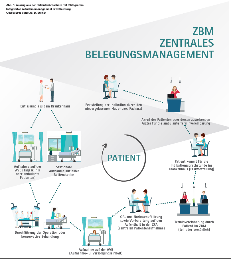 Der Arzt stellt beim ambulanten Erstkontakt (Indikationssprechstunde entspricht der ambulanten Erstvorstellung) die Indikation und die Dringlichkeit einer stationären Aufnahme fest. Die Mitarbeiter des zentralen Belegungsmanagements übernehmen die weiteren Termin- und Planungstätigkeiten (Terminkoordination für weitere Abklärungen, Aufnahme- und Belegungsplanung). Der Arzt widmet sich seiner Kompetenz als Mediziner und ist bezüglich der administrativen Tätigkeiten bedeutsam entlastet.