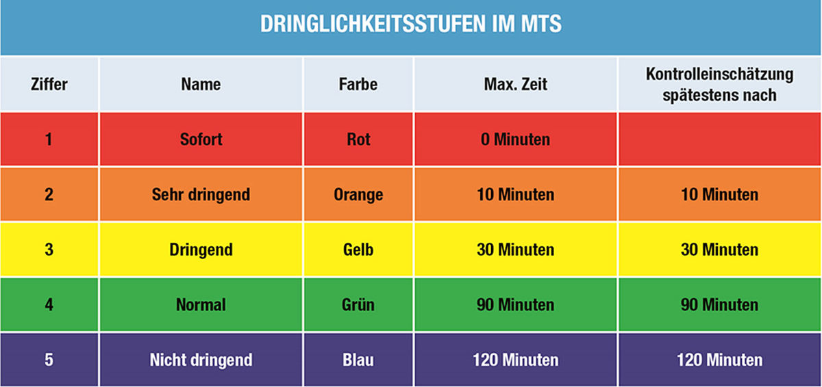 Bei Ihrer Ankunft werden Sie von speziell geschulten, diplomierten Pflegepersonen zu Ihren Beschwerden und Symptomen befragt. Danach erfolgt die Einschätzung der Behandlungsdringlichkeit nach internationalen Richtlinien, dem Mancherster Triage System. Je nach Dringlichkeit - von 1 (sofort) bis 5 (nicht dringend) - kommen Sie sofort in den Behandlungsraum oder werden gebeten im Wartebereich Platz zu nehmen.