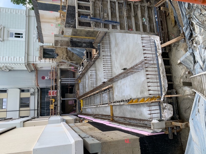 Die Balkone des Personalhauses wurden für das neue Fluchtstiegenhaus demontiert und die Micro Pfähle wurde gebohrt. Die Baumaßnahmen schreiten nach Plan voraus.