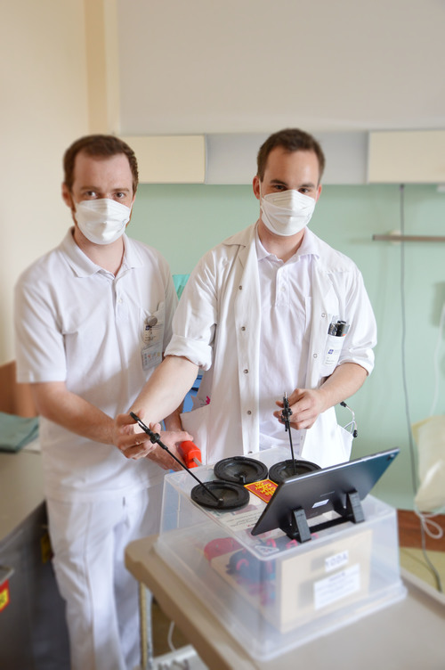 Anleitung vom Erfinder selbst, um OP-fit(ter) zu werden: Dr. Daniel Schmid schult seinen Kollegen Dr. Julian Edlinger