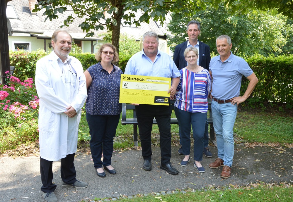 „Wir entschieden uns das verbliebene Vermögen an den Förderkreis Onkologie St. Veit/Glan zu spenden, als ein Zeichen unserer Wertschätzung und um die Krebsbehandlung am Krankenhaus der Barmherzigen Brüder St. Veit/Glan zu unterstützen“, begründet Wirtin Doris Kornberger vom gleichnamigen Gasthaus, das Engagement des Sparvereins. Bei strahlendem Sonnenschein überreichten die Vertreter des einst so beliebten Vereins den Spendenscheck in Höhe von 1.000 Euro an den Förderkreis Onkologie vertreten durch den Obmann Meinhard Aicher, PMBA, Abteilungsvorstand und wissenschaftlichen Beirat Prim. Dr. Franz Siebert und den Kaufmännischen Direktor des Krankenhauses St. Veit Mag. Manfred Kraßnitzer.