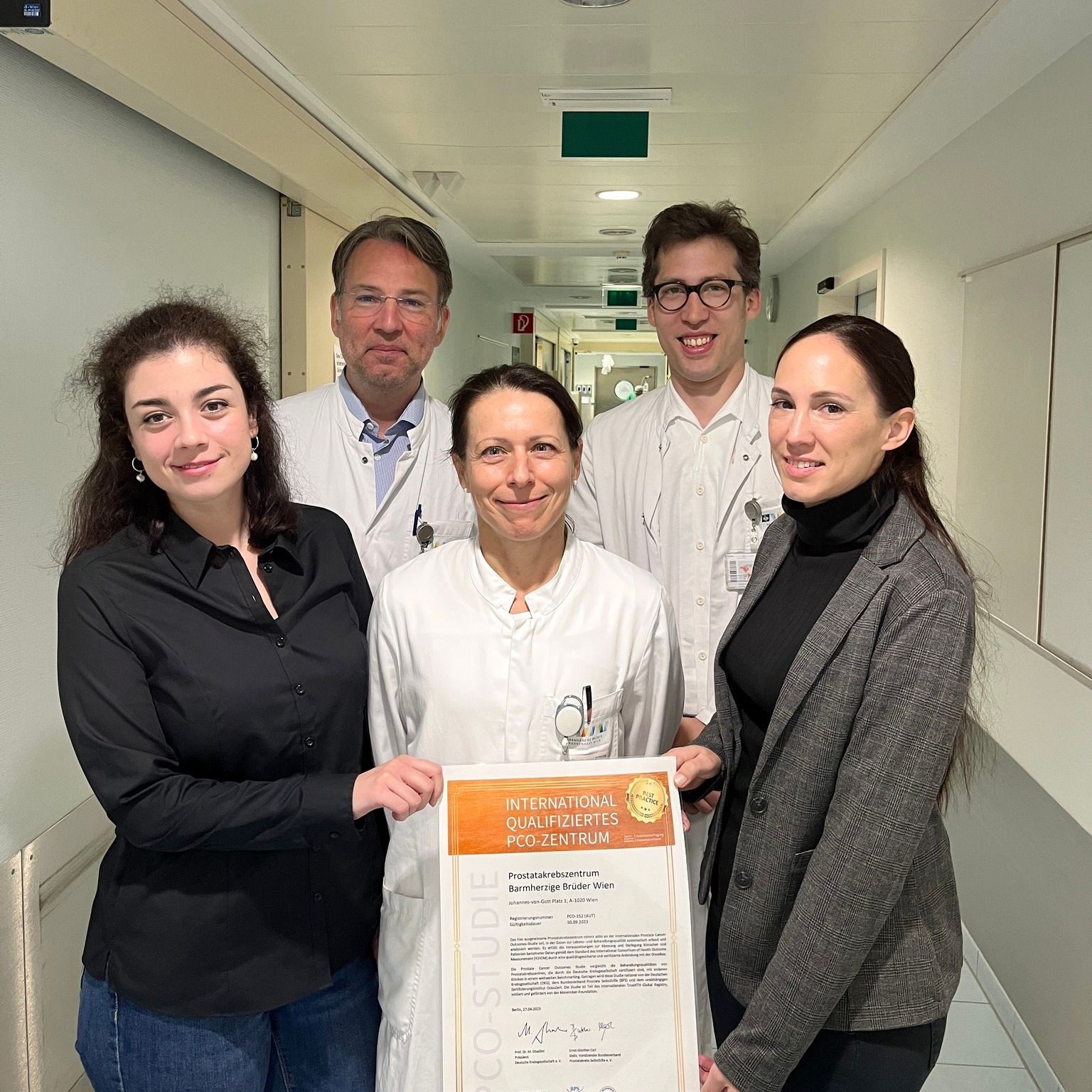 Das Prostatakrebszentrum (pkzwien.at) im Krankenhaus Barmherzigen Brüder Wien wurde von der Deutschen Krebsgesellschaft e.V. (DKG) als „International qualifiziertes PCO-Zentrum“ zertifiziert. Besonders erfreulich ist, dass unser Zentrum zu den besten 5 Zentren aller DKG-zertifizierten Prostatakrebszentren im deutschsprachigen Raum gehört, und daher mit der „Best Practice“ Urkunde ausgezeichnet wurde.