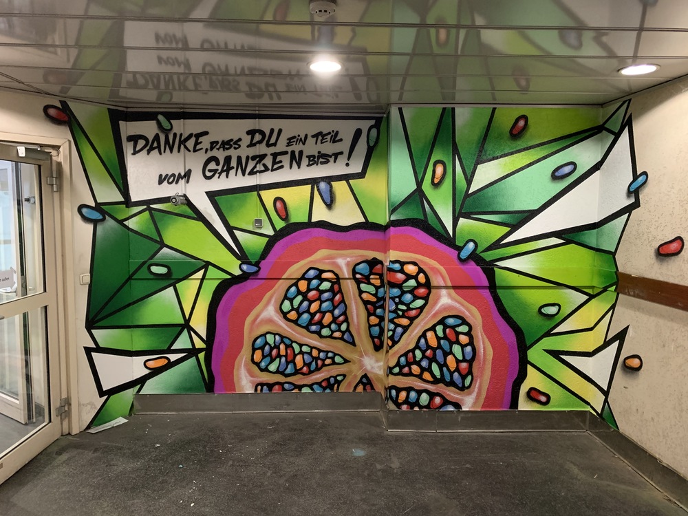 Mit einem Graffiti hat das Krankenhaus die Mitarbeiter*innen überrascht. Die ersten Schritte in den Arbeitsalltag vermitteln ein Gemeinschaftsgefühl.